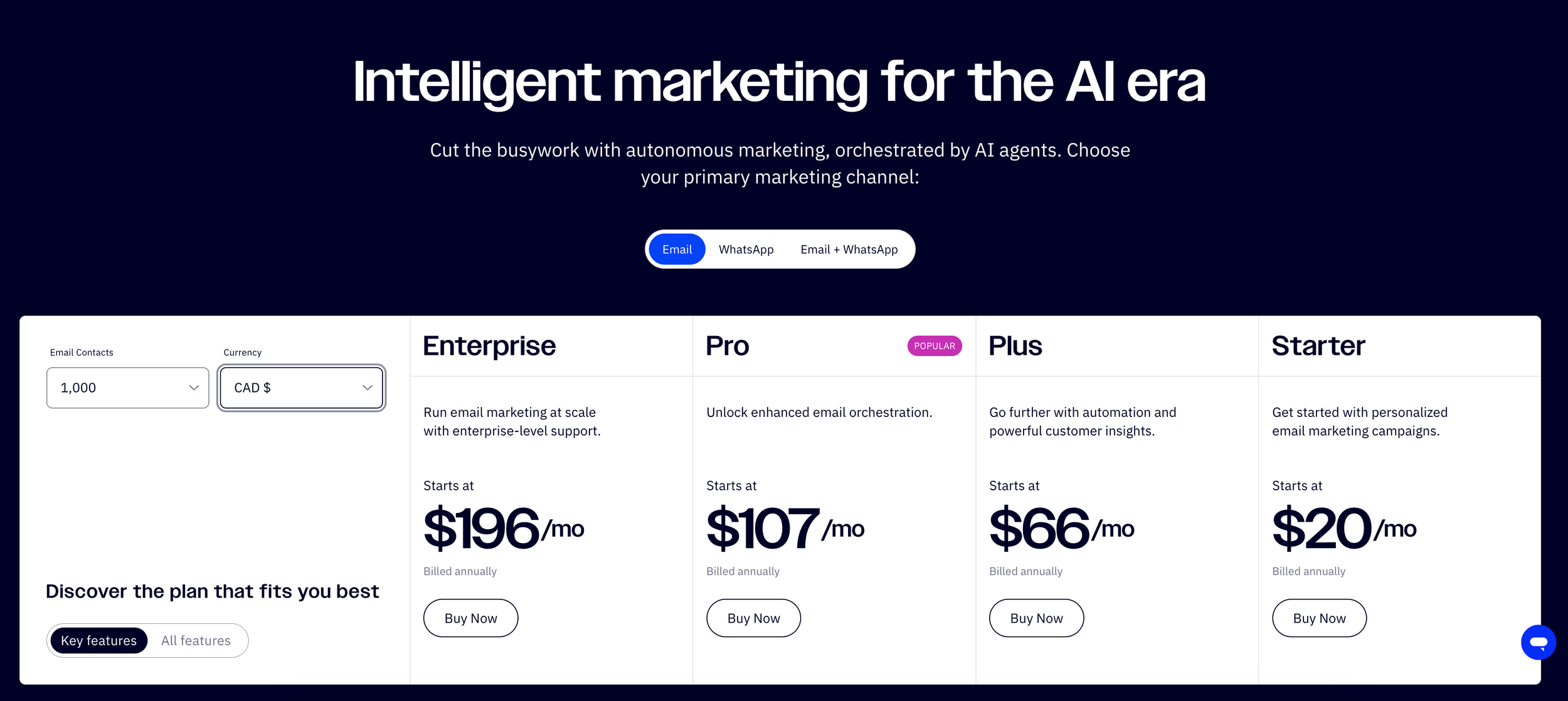 As usual, it depends on the features you require and your number of contacts. However, you can get an excellent foundation for just $20 CAD/month (billed annually) (from our experience, competitors charge anywhere from $75-$100/month for similar functionality and contact numbers).