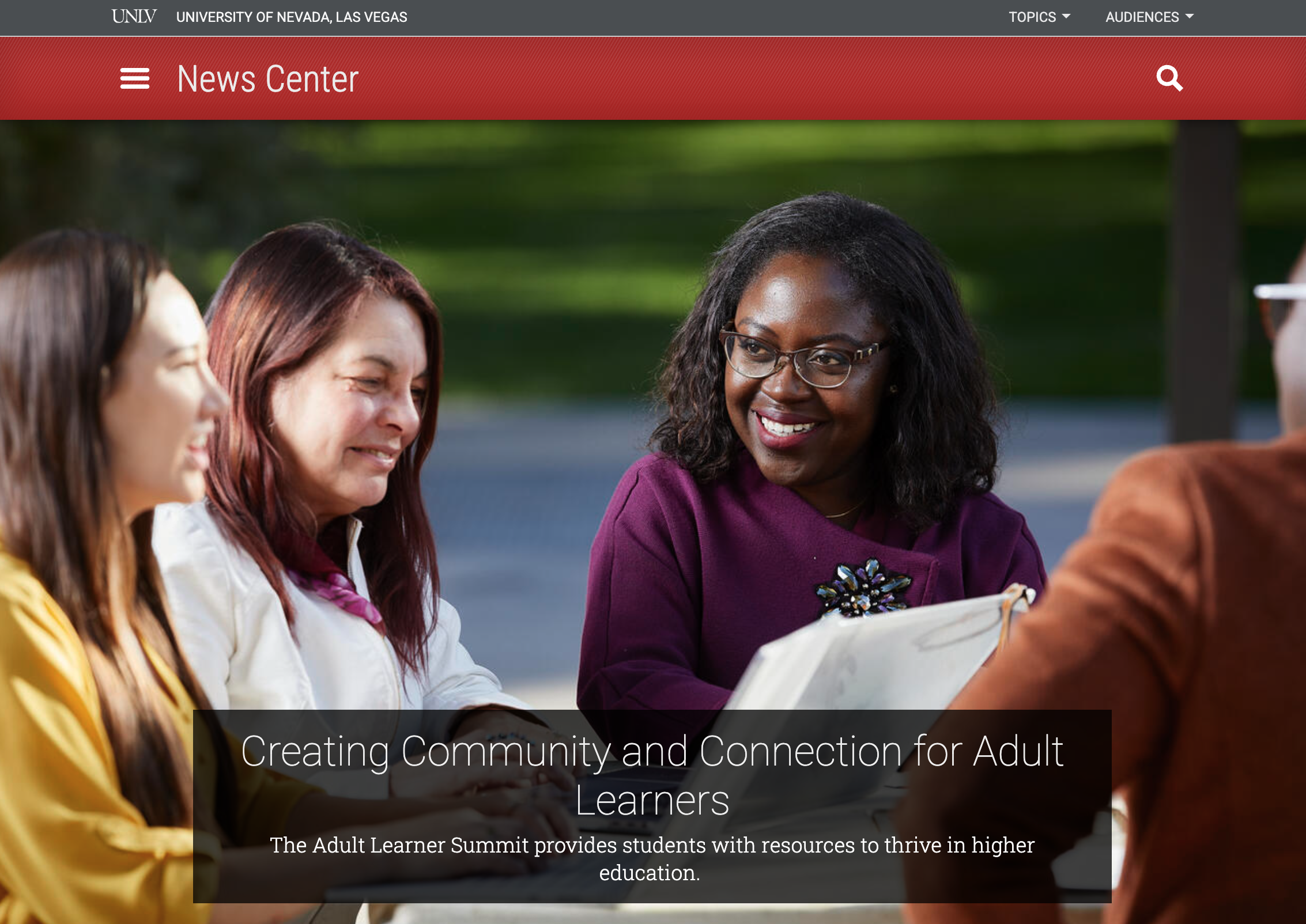 University of Nevada, Las Vegas (UNLV) hosts an annual “Adult Learner Summit” and maintains an Adult Learner Advisory Board that helps build community, share resources, and support returning students balancing life and study.
